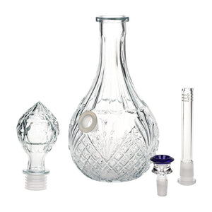 Graceful and refined, the Vintage Decanter Water Drop Glass Bong elevates classic glass design with modern performance. Standing 12.5 inches tall, this elegant water pipe features a vintage decanter silhouette, a flowing water-drop pattern, and an overlapping crystal-cut ripple base that adds depth, balance, and visual movement.